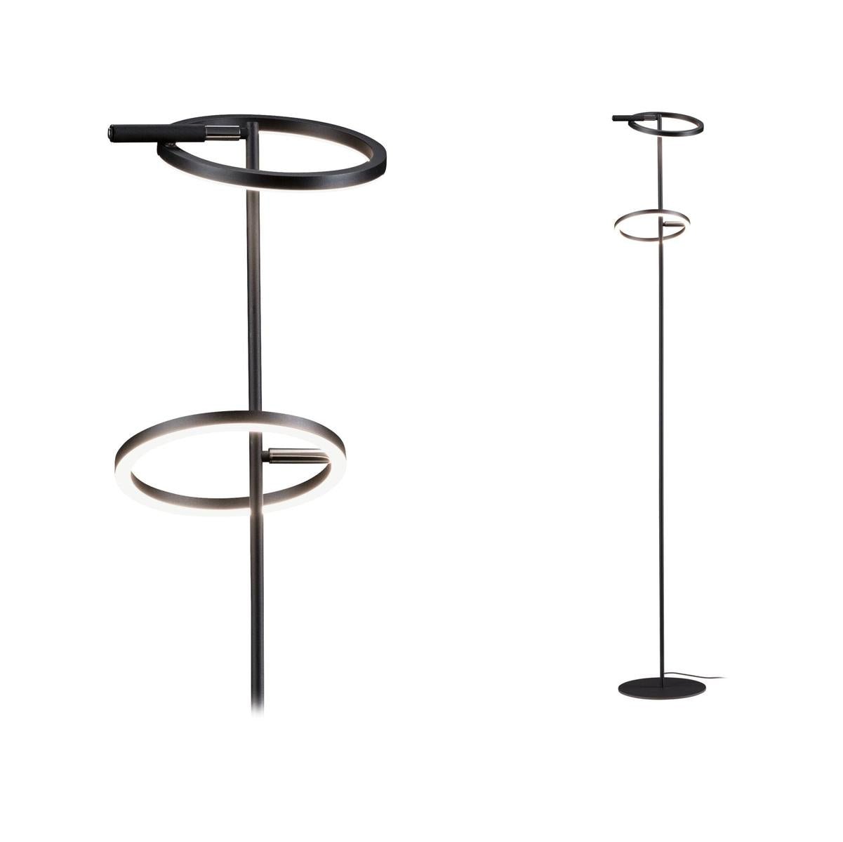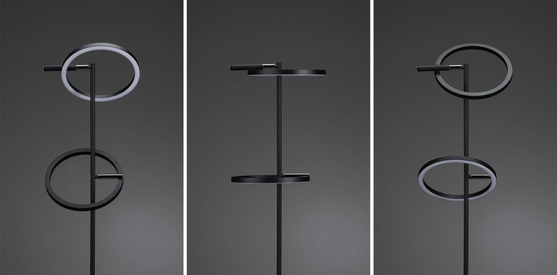 Den moderne gulvarmaturen Odila i matt sort og krom kan brukes overalt og kombinerer høy funksjonalitet med et delikat design. Den passer inn i en rekke interiørstiler og imponerer med sitt elegante, men enkle utseende. Lysstyrken på gulvarmaturen kan justeres trinnløst, slik at du kan stille inn den lysatmosfæren du ønsker. Lysfargen kan justeres individuelt fra 2700K til 6500K ved hjelp av berøringsbryteren på armaturen takket være den intelligente hvite lyskontrollen Tunable White. Denne fleksibiliteten gjør dem til det perfekte tilbehøret for alle typer bruksområder – fra koselig, varmhvitt lys i stuen eller på soverommet, til dagslyshvitt lys som er ideelt for hjemmekontoret. Ringarmaturene er bevegelige for allsidig justering avhengig av bruk. Med en effekt på 1200 lm sikrer den høy lysutbytte, mens den satinerte diffusoren skaper blendfri belysning.