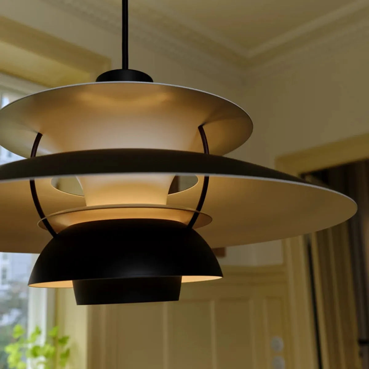 Poul Henningsen utviklet PH 5 i 1958 som svar på pæreprodusenters konstante endringer i form og størrelse på glødelamper, og ga den navn etter størrelsen på pendelens hovedskygge, som er 50 cm i diameter. Da lampen ble introdusert, skrev han, dristig som vanlig, om hvordan han hadde mistet troen på at produsentene av glødelamper noensinne ville lære å vurdere sunn fornuft eller å legge vekt på forbrukerens beste interesser: «Jeg har akseptert skjebnen, og med Louis Poulsens tillatelse har jeg designet en PH-armatur som kan brukes med alle slags lyskilder, julelys og 100 W glødetrådpærer. Selv om bruk av lysrør kanskje ville være for mye forlangt i den eksisterende formen!» På den tiden visste ingen at PH 5 ville bli synonymt med PH-lyset, som forblir 100 % blendefritt uavhengig av hvordan lyset er installert eller hvilken lyskilde som brukes. I dag fortsetter PH 5 å fremheve selv de mest moderne interiør, på lik linje med PH 5 Mini med en toppskjermdiameter på 30 centimeter, introdusert i Poul Henningsens ånd i 2017. Louis Poulsen ønsker å imøtekomme en moderne og kreativ livsstil, og derfor endret han den berømte pendelen for første gang. I 2020 introduseres PH 5 Mini Monochrome-serien for å understreke denne slående designen for et mer moderne utseende. De matte metallskjermene fås i svart, hvit og ultrablå for den mer dristige innrederen.