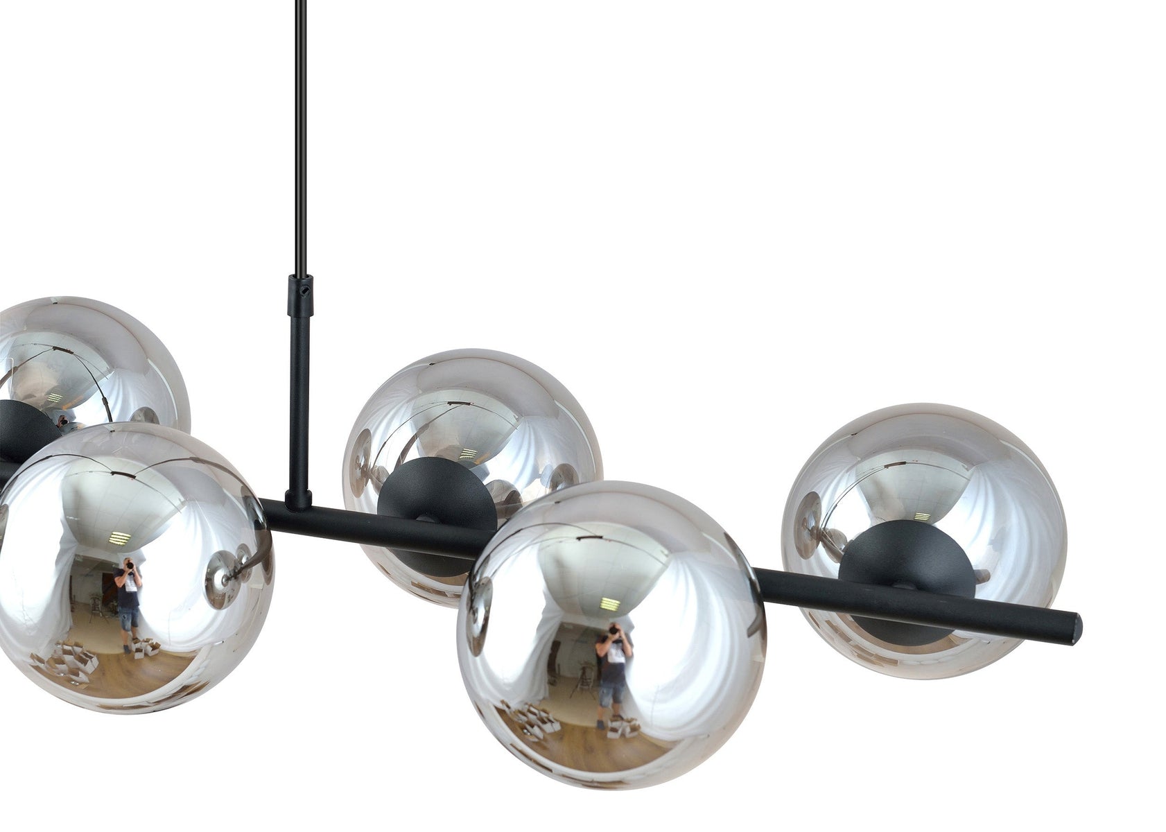 Rory en moderne taklampeserie. Modellen finnes som 6 eller 8 lys og i farget kuppel i klar, røykfarget, eller opal glass.