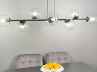 Rossi er en stilfull og elegant lampeserie, som kommer i flere modeller som 8 lys, 6 lys og vegglamper i fargene hvit eller sort med røykfarget eller klart glass.