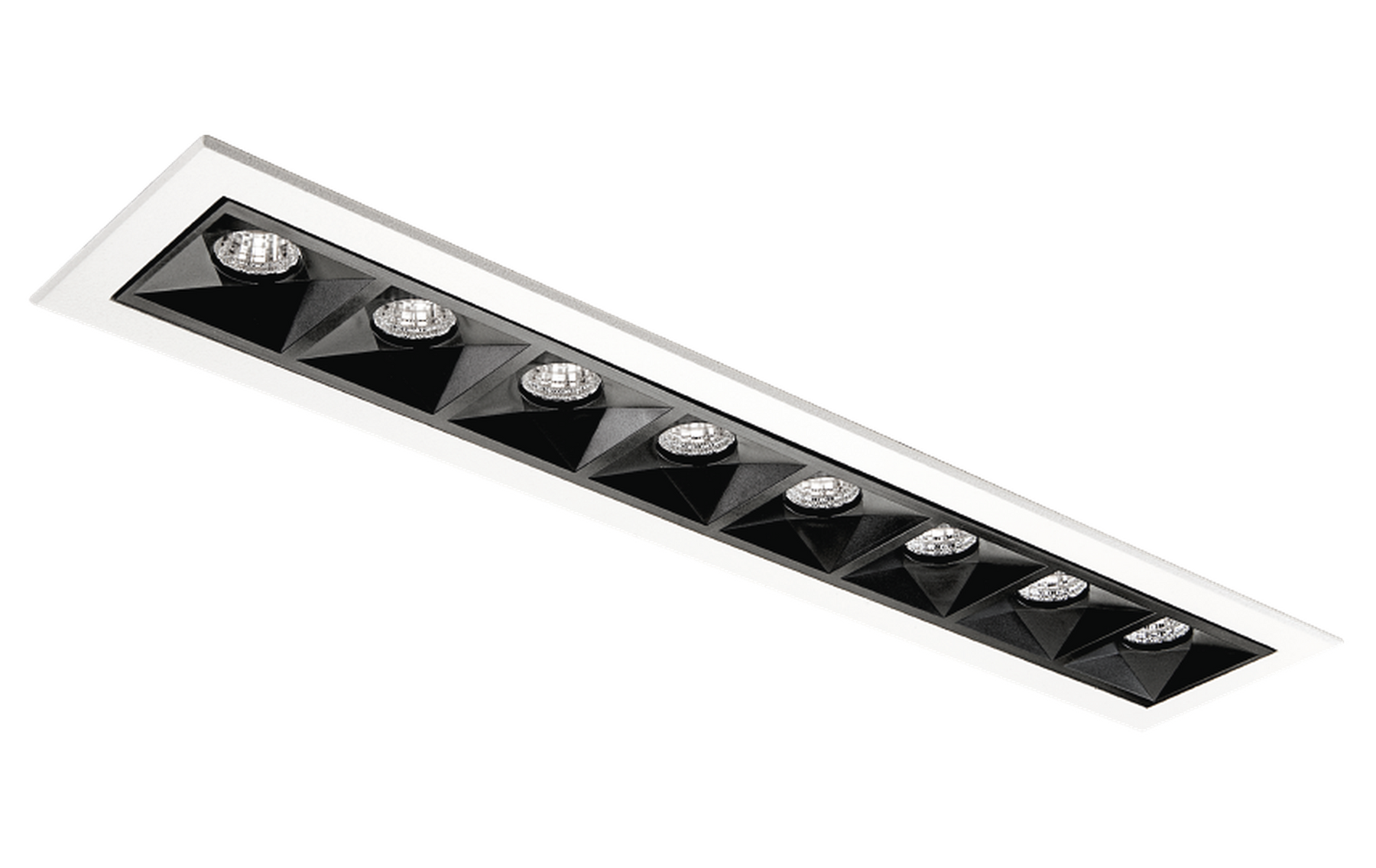 Inspire R er en rektangulær, innfelt downlight til innendørs bruk. Med kubiske, svarte reflektorer gir den svært lite blending og avgir harmonisk stabilt lys med et veldefinert lysmønster.