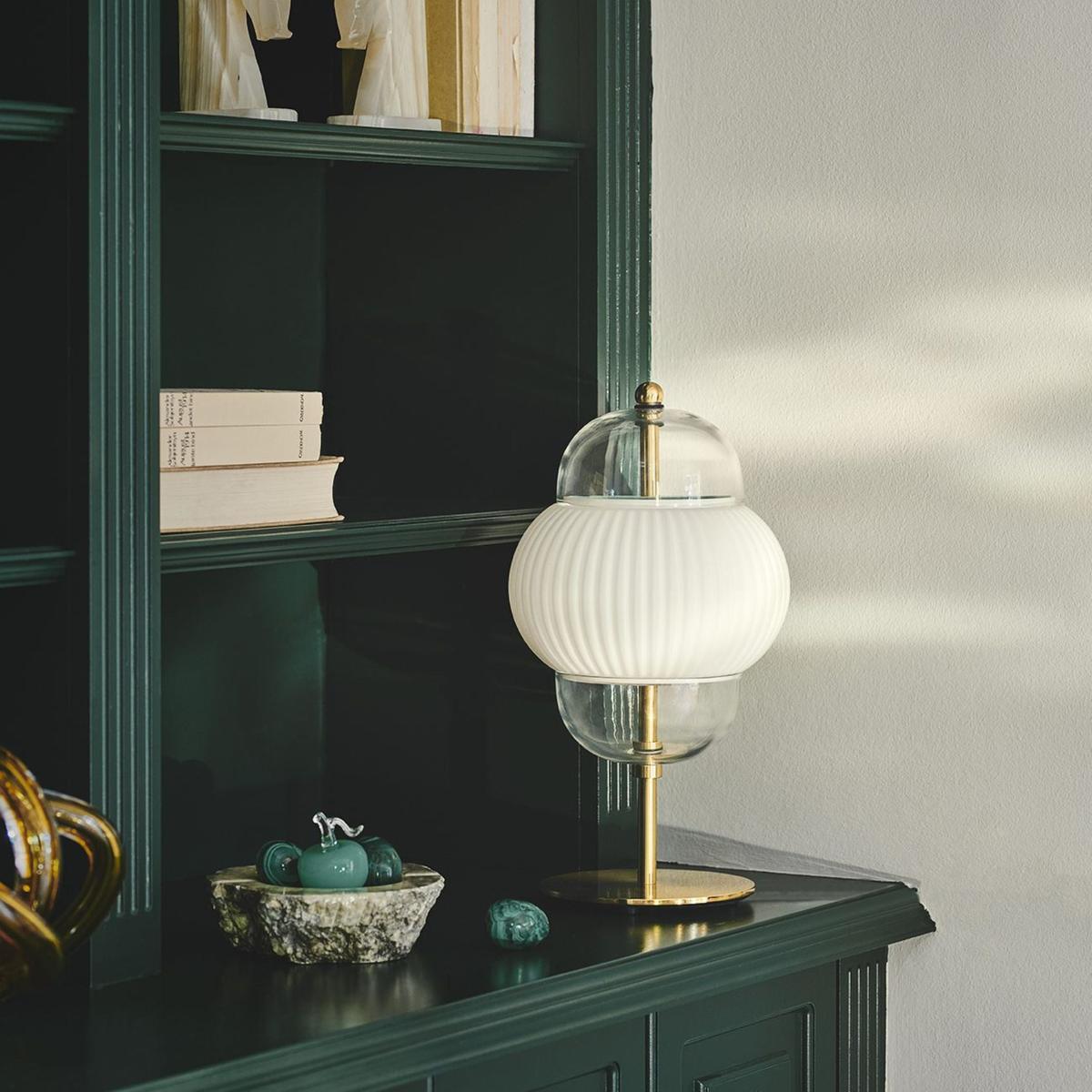 Shahin-bordlampen er vår versjon av en klassisk hvit pendellampe. Blandingen av opalglass, klart glass og messing er uunngåelig når det gjelder belysning. S