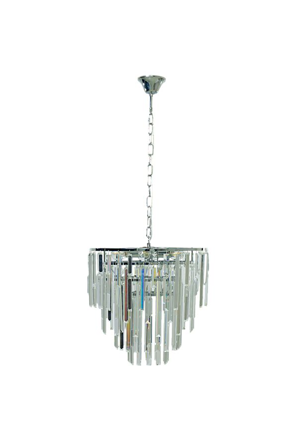 Strati er en moderne krystallkrone med et praktfullt og eksklusivt uttrykk som vil tiltrekke seg oppmerksomhet. Rammen i metall er utstyrt med klare krystallprismer som skaper et vakkert lysspill. La Strati lyse opp spisebordet under hyggelige middager, eller bli et fokuspunkt i stuen eller soverommet.