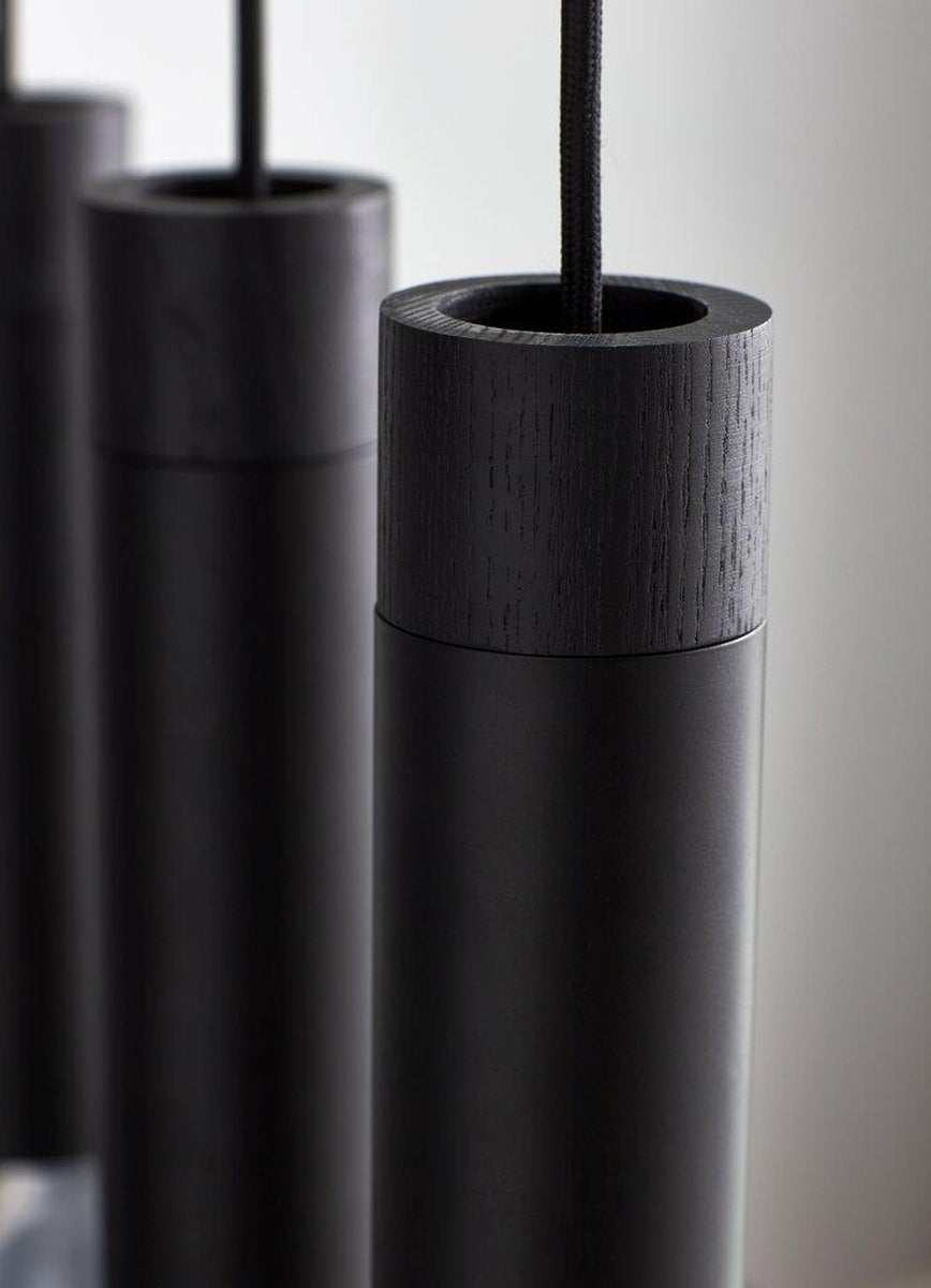 Tilo 5-pendel i svart metall og svartmalt ask er den perfekte lampen over et langt spisebord, siden alle de fem lampehodene gir et godt funksjonelt nedadrettet lys.