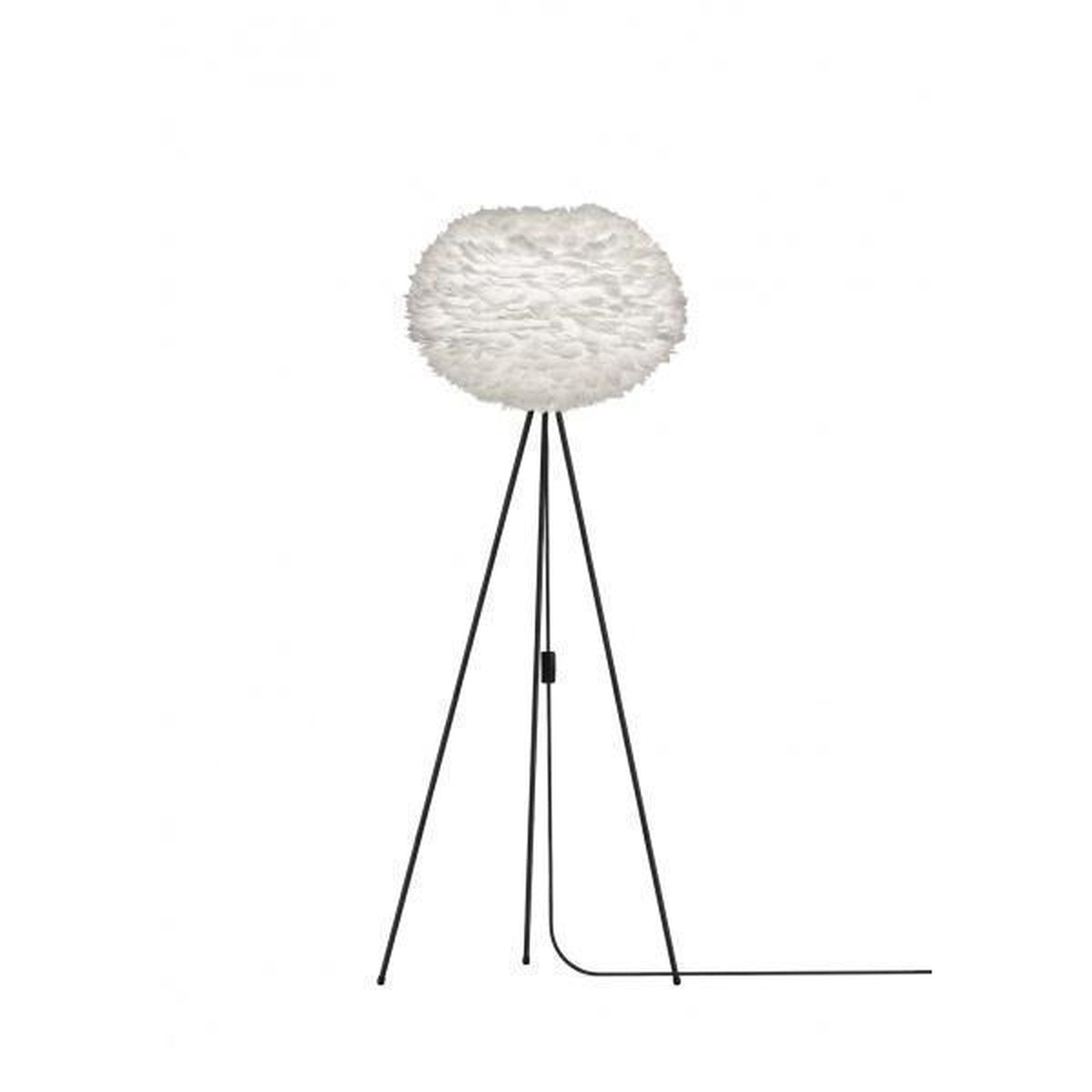 Eos Large-lampeskjerm med Tripod-gulvlampefot. Det utstråler en myk og koselig glød. Rutinemessig rengjøring av Eos-fjærlampe gjøres enkelt med en hårføner. Lampen kommer i en vakker gaveeske.