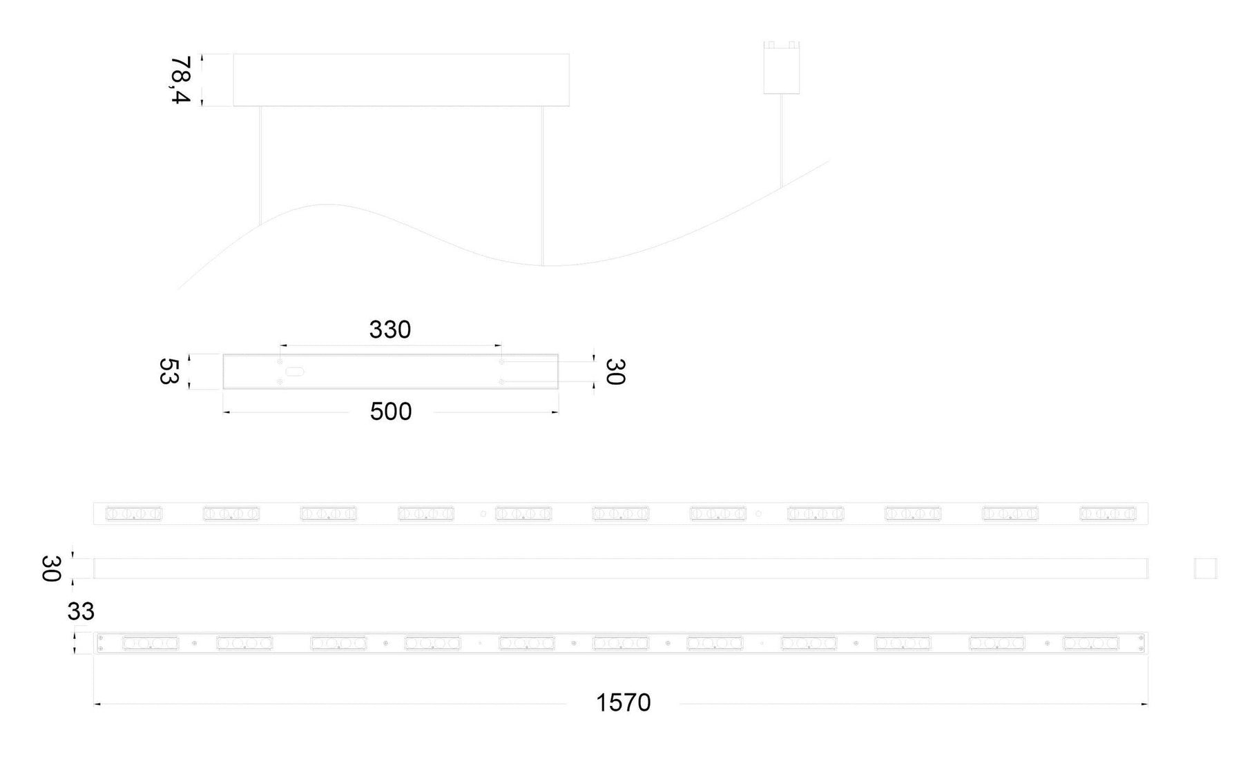 - Lengde ledning: 150 cm fra takboks ned til pendel