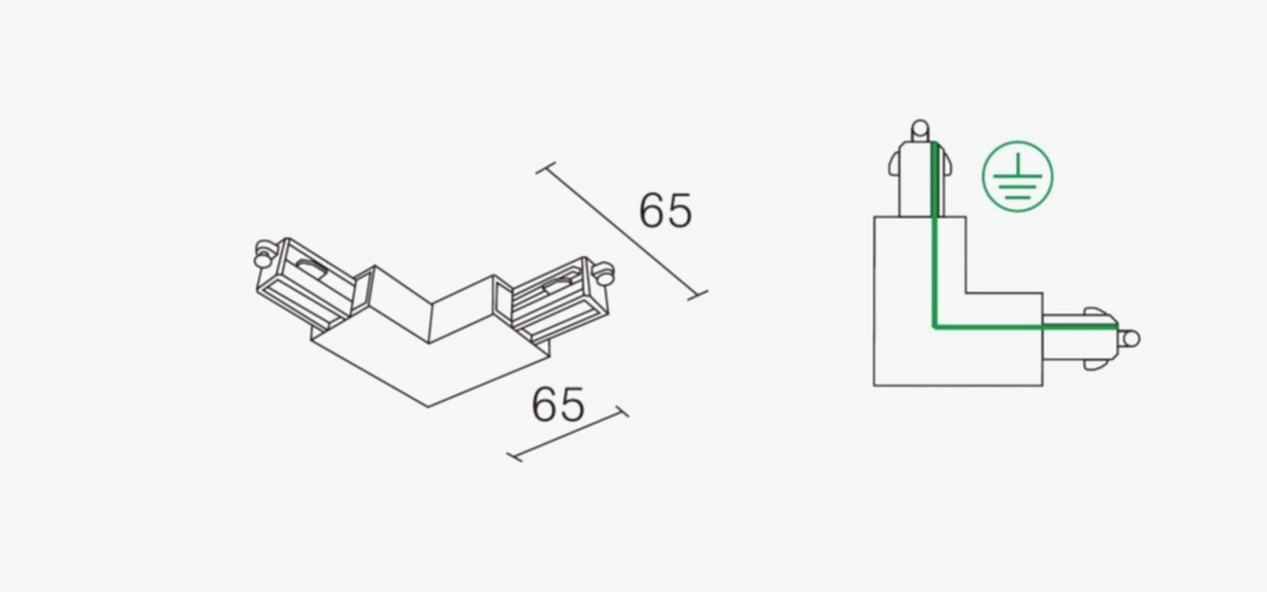 Vinkelskjøt som hører til Vox-skinnesystemet fra NorDesign.