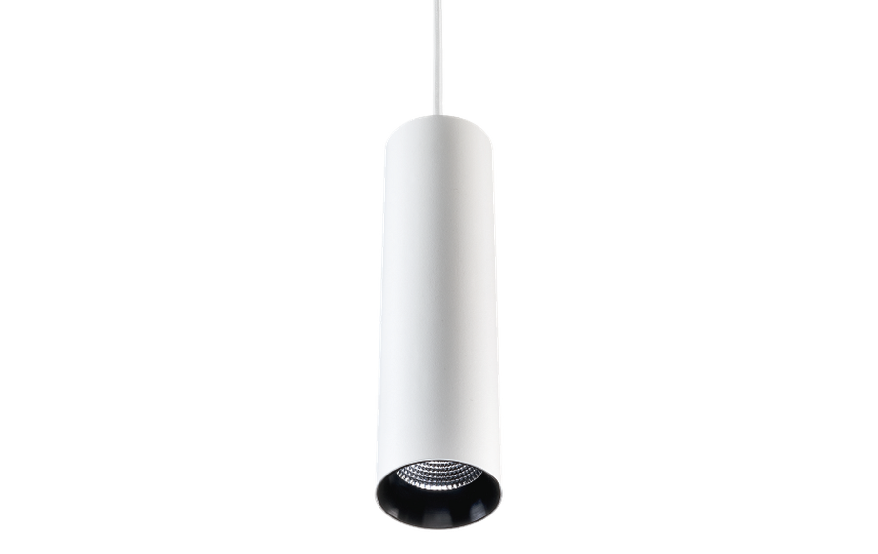 Minimalistisk, slank pendel for bruk i Zip-skinnesystem. Perfekt over kjøkkenbenk, spisebord eller i vinduet. Produsert i pulverlakkert, trykkstøpt aluminium og finnes i sort eller hvit finish. Den tilbaketrukne lyskilden gir minimal blending, og kan dimmes med ekstern dimmer.
